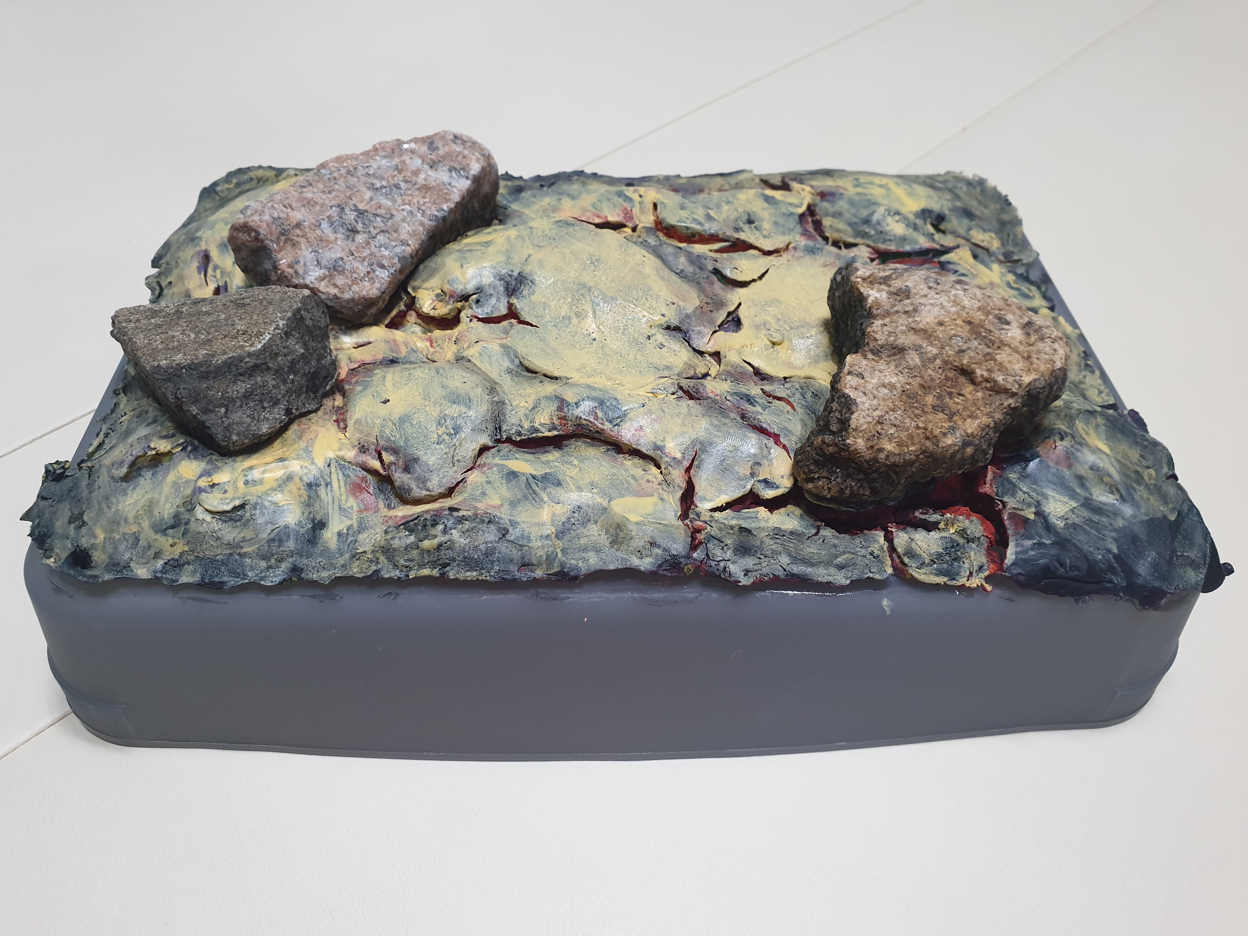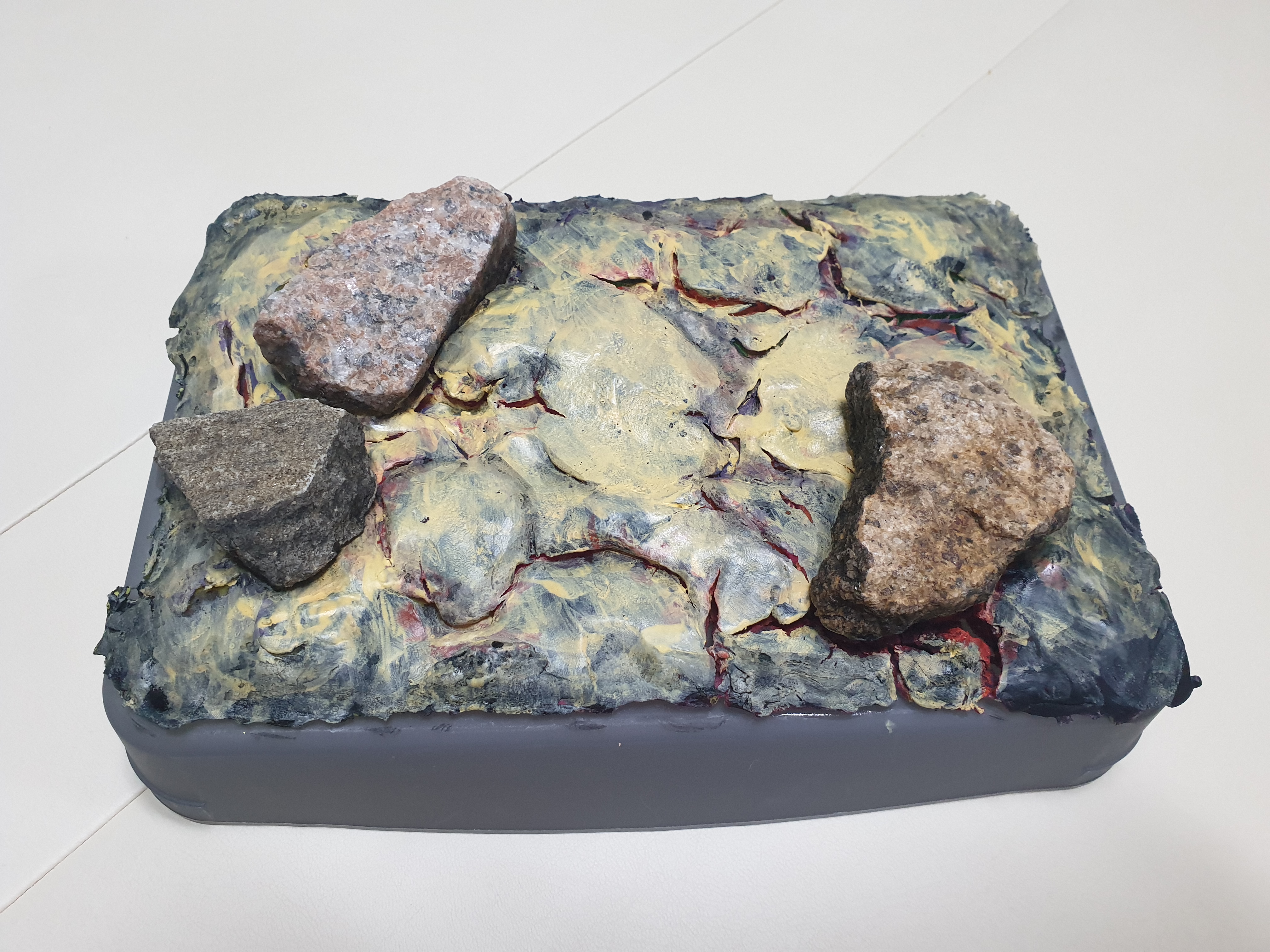 점토를 올린 뒤 오랜시간 말려주어야 하는데, 기다리기 지루하신 분들은 택배박스에 만든 디오라마를 넣고,