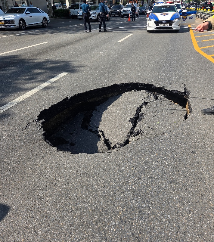 - 서울 – 강동구 명일동 싱크홀(2025년): 2025년 3월 서울 강동구에서도 대형 싱크홀 사고가 발생했습니다. 강동구 명일동 한 교차로에서 직경 약 20m, 깊이 20m에 가까운 거대한 싱크홀이 순식간에 생기며 오토바이 운전자가 추락해 사망한 안타까운 일이 벌어졌습니다. 현재 정확한 원인을 조사 중이지만, 인근에서 진행 중이던 지하철 9호선 연장 터널 공사로 인해 지반이 약해졌을 가능성이 유력하게 제기되고 있습니다. 이 사고는 도심지 대형 싱크홀의 위험성을 단적으로 보여주었고, 서울시가 지하안전 대책을 대폭 강화하는 계기가 되었습니다.